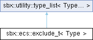Inheritance diagram for sbx::ecs::exclude_t< Type >: